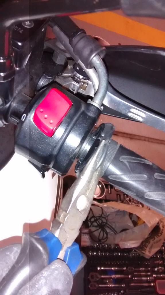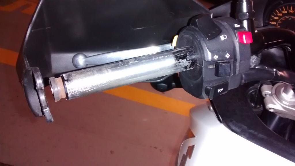 Clean up the throttle side with cloth. You may wish to also remove the plastic ring on the other end of the throttle (beside the ignition) As this pushes the Oxford grip further away from the ignition end. But it is not 100% necessary.
