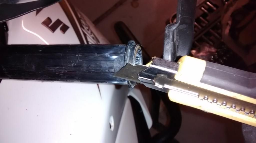 I pulled the end of the grip off with pliers, but it got so far down that it would not move so cut with knife and came off immediately