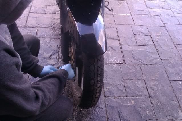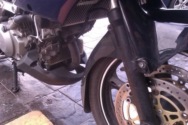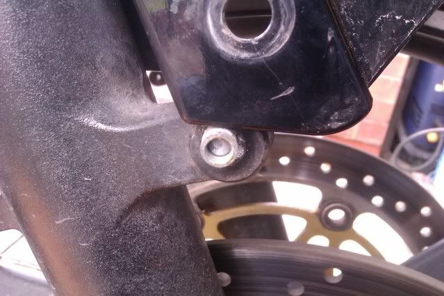 Then remove the remaining bolts either side securing the front mudguard to the forks. Be aware though, If your bike is anything like mine, you may have a couple of cheese bolts. I had to drill out and retap these buggers