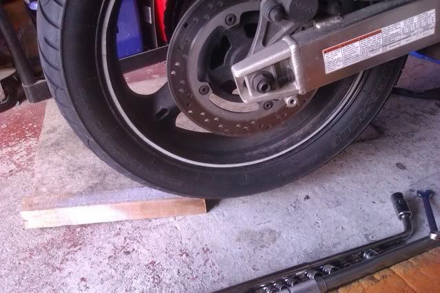 Now proceed to loosening the 10mm pinch bolts on the front right fork, then undo the front axle using an internal 19mm axle tool and remove the front wheel.