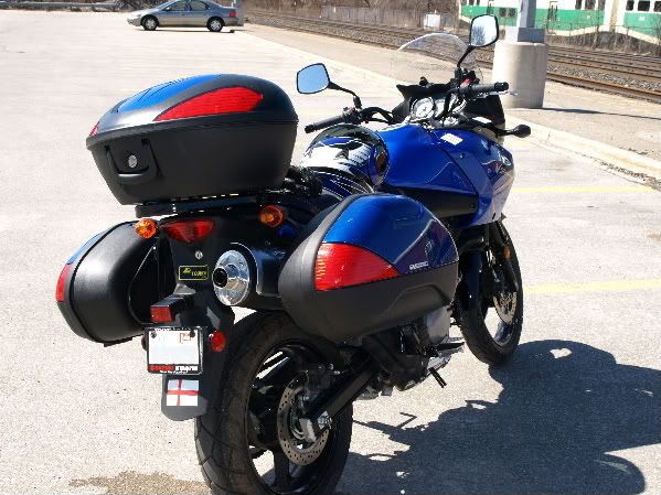 I should have taken some pictures from the previous weekend, I managed to get bogged down on the back lawn. The ground hadn't dried out enough from the thawed snow so the bike just sunk down with any throttle, it was absolutely covered in mud. My GF was NOT impressed so I had to extract it and take it back to the winter storage facility. It took ages to clean. I didn't do such a good job on the tyres, they're still pretty muddy in the photo's.