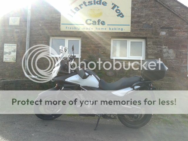 Took a trip around the North Pennines today, which gave me the first chance to get some pics of my latest strom. Went from Chester le Street to Derwent Reservoir, Hexham Racecourse, Whitfield, the clattering causeway, Hallbankgate, Eden valley, over Hartside and back down Weardale. Was scoping out a forum ride for next year but some of those roads aren't suitable for group riding. Some of them weren't suitable for single riding, being covered in cowshit. Almost took a couple of low siders slipping on the stuff.